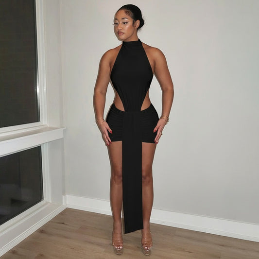 Hollow Cutout Ribbon Short Sleeveless Dress