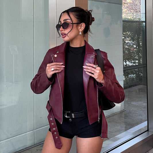 Vintage Leather Color Contrast Patchwork Short Chic Jacket