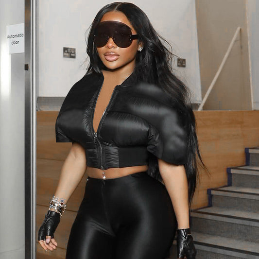 Short Sleeve Ultra Short Cropped Zipper Jacket
