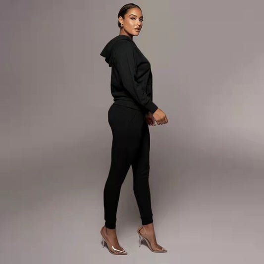 Fleece Hooded Long Sleeve Sweater Casual Short Suit