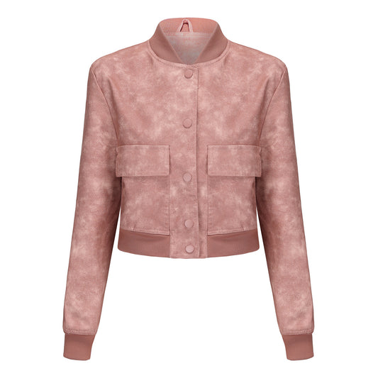 Long-Sleeved Faux Leather Motorcycle Jacket