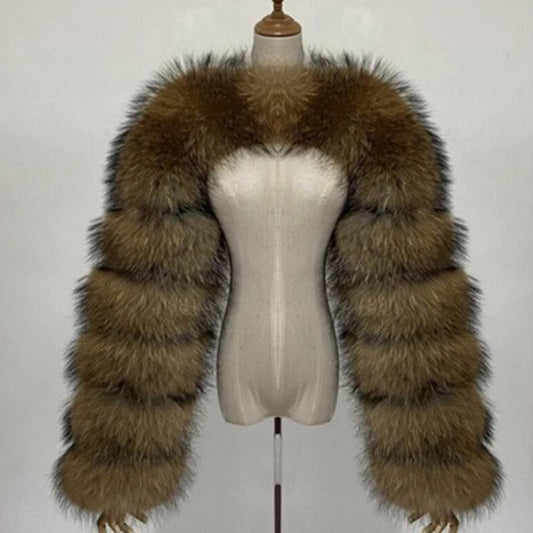 Ultra Short Long Sleeve Splicing Faux Fur Coat