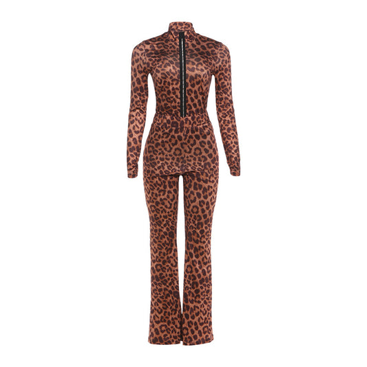 Leopard Print High Waisted Two Piece Set
