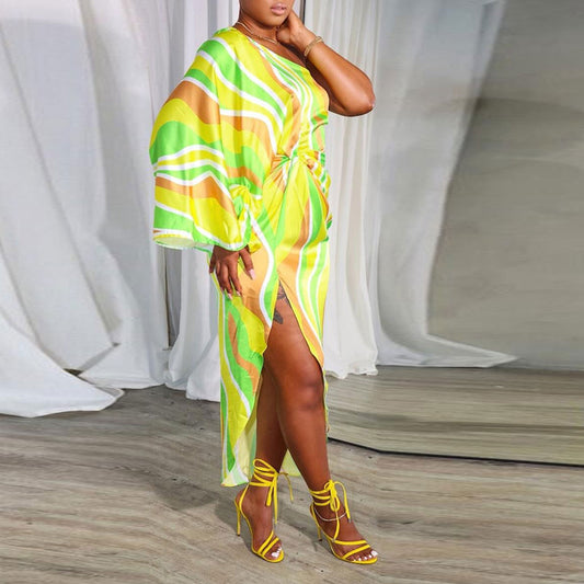 Irregular Asymmetric Elastic Hip Back Slit Dress