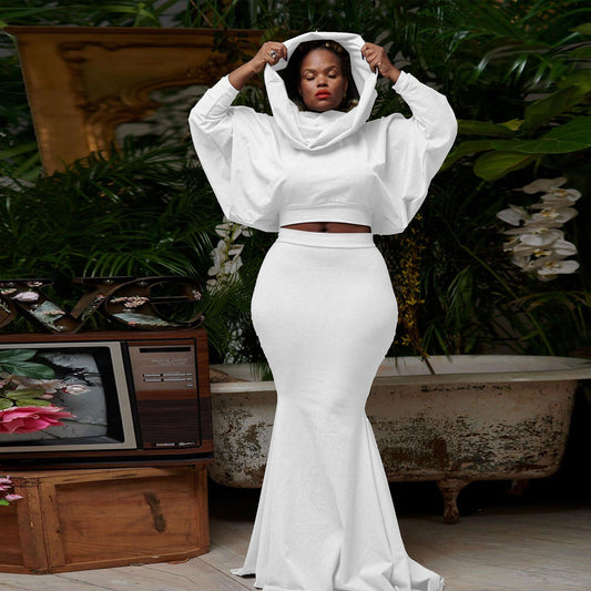 Oblique Shoulder Bow Split Skirt Dress Two-Piece Set