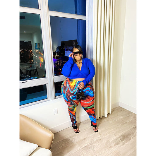 V Neck Long Sleeve Top Wide Leg Trousers Suit