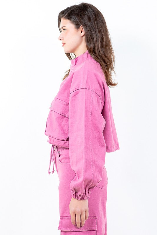 Drawstring Hem Cargo Pocket Pants Cropped Jacket