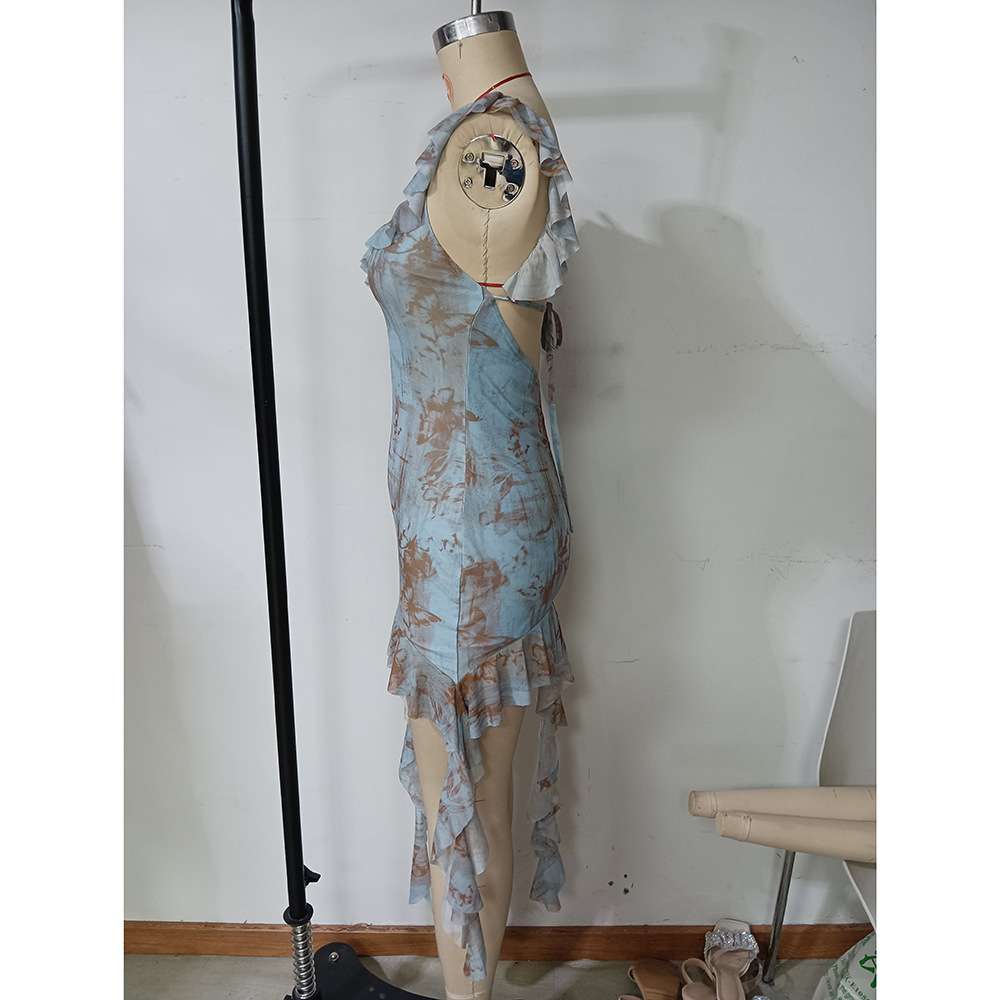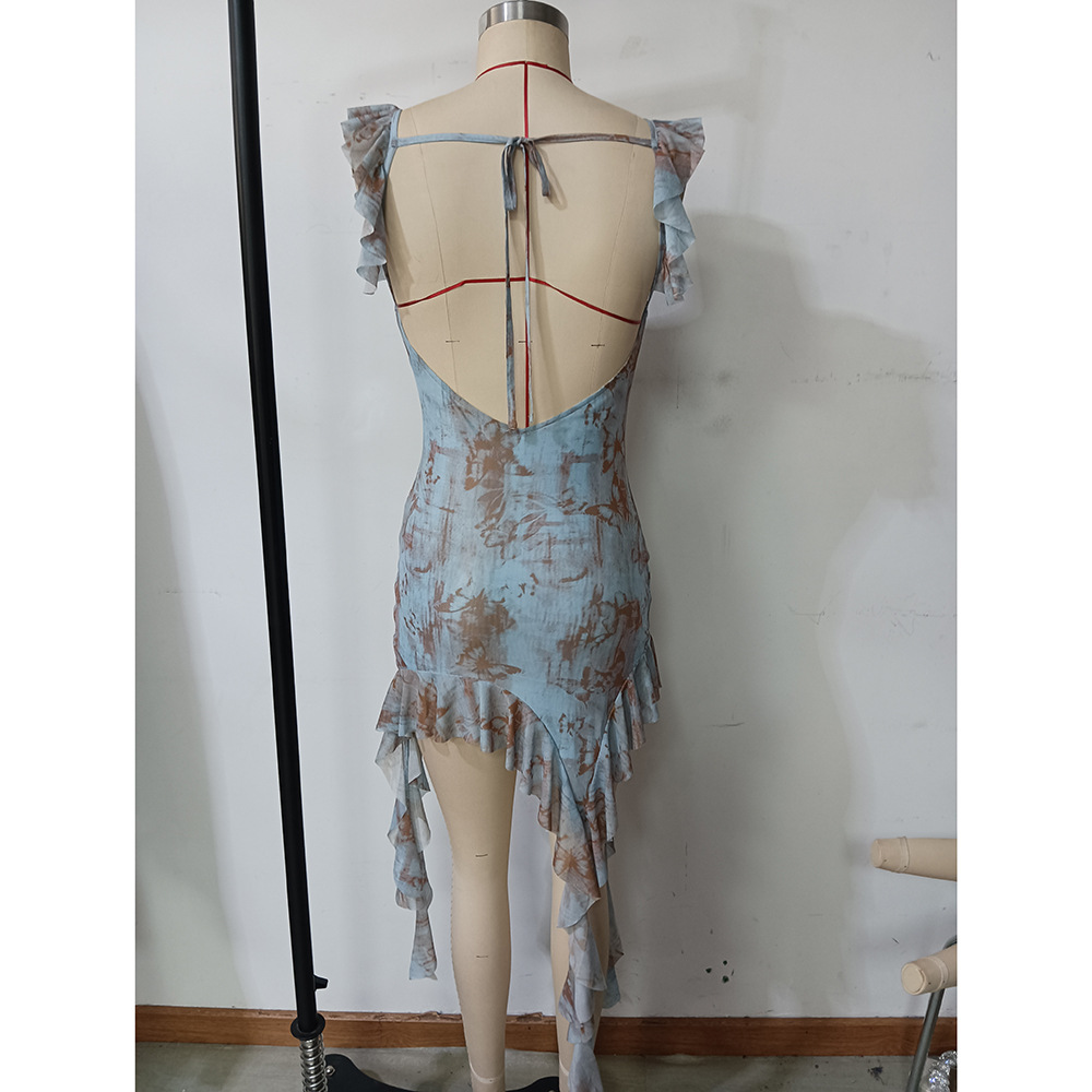 Ruffled Backless Sling Dress