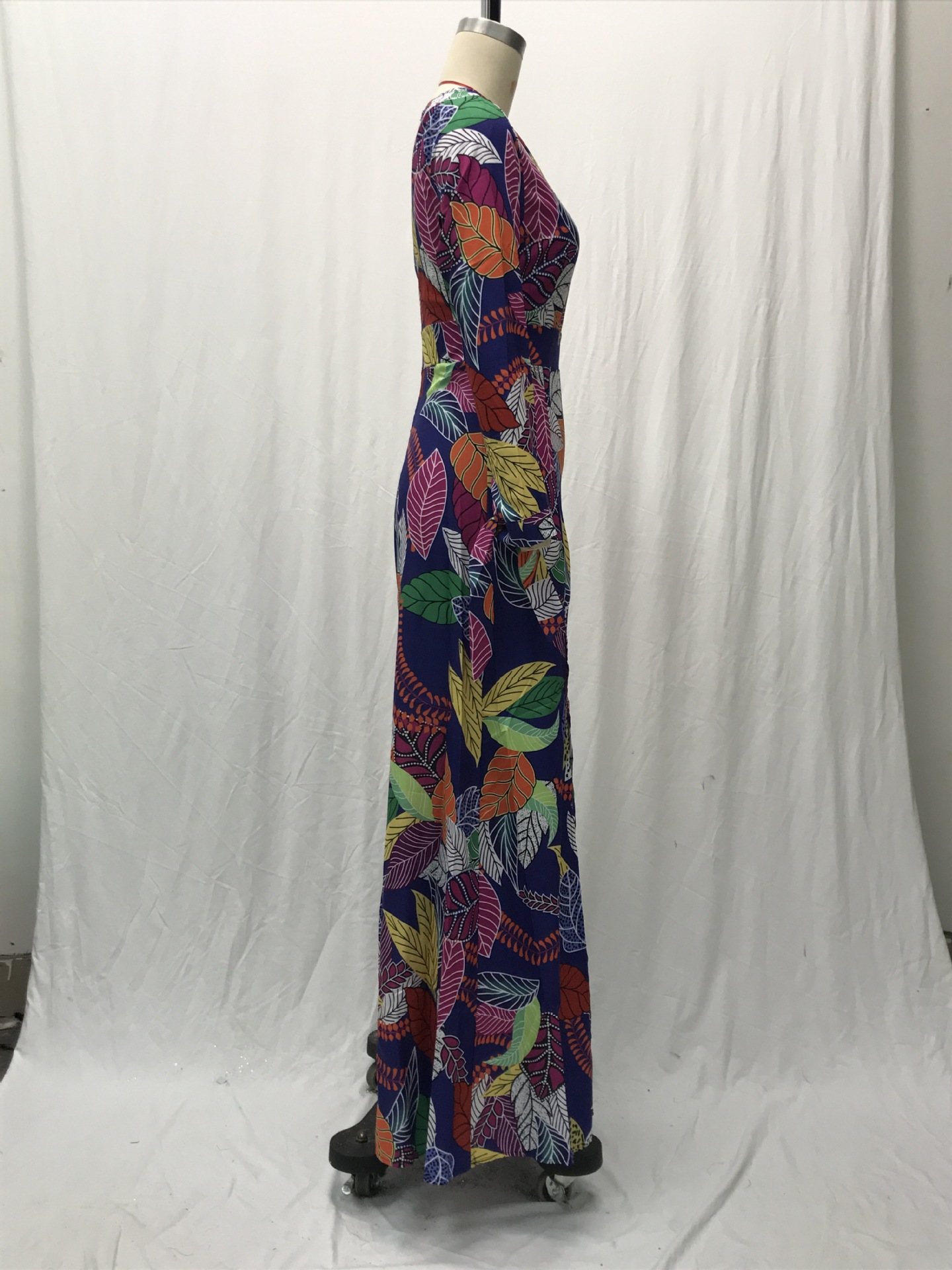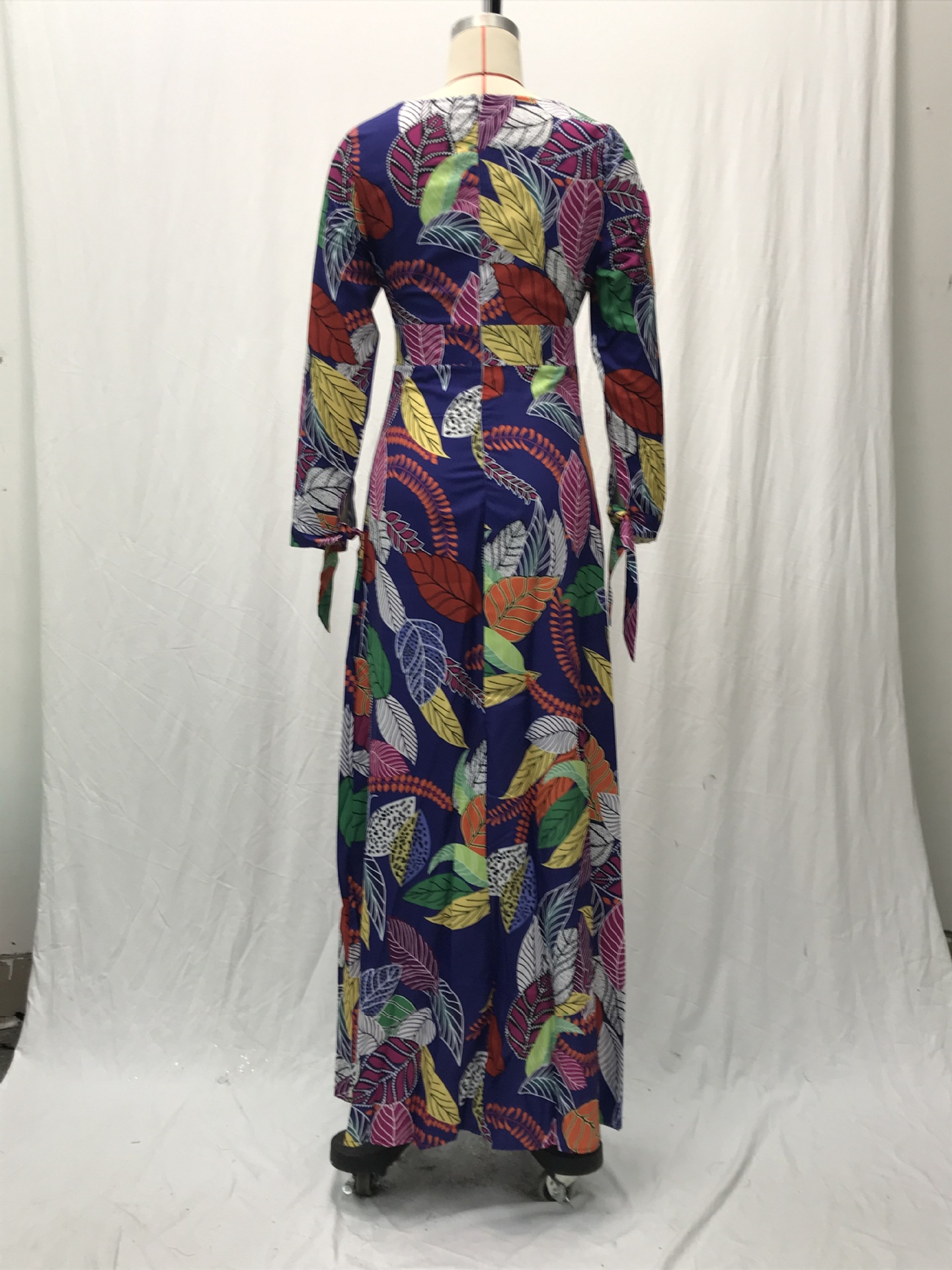 Summer Women Printed Sexy Dress Vacation Split Deep V Plunge Dress