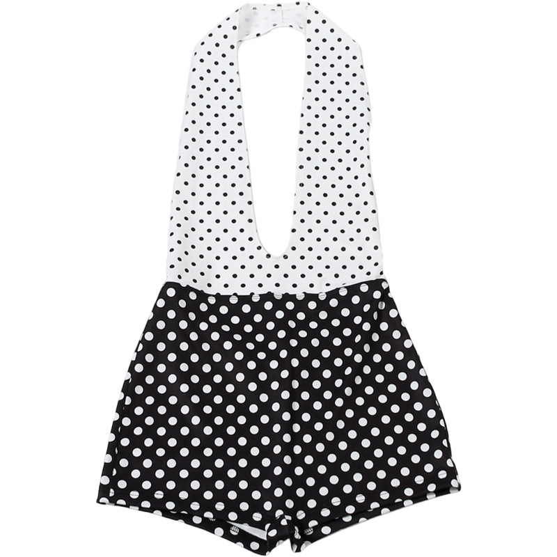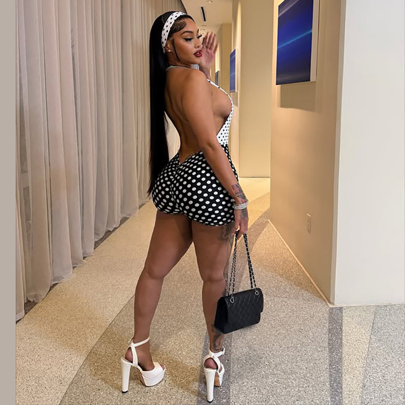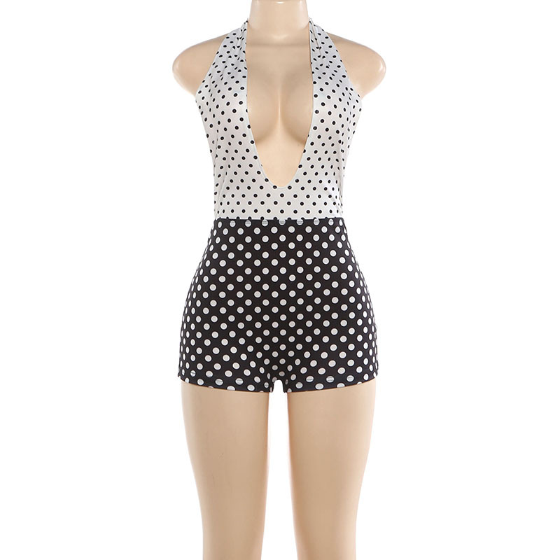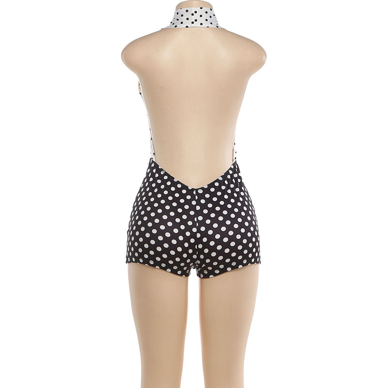Winter Women Clothing Color Contrast Polka Dot Printed Sexy Halter Backless Jumpsuit