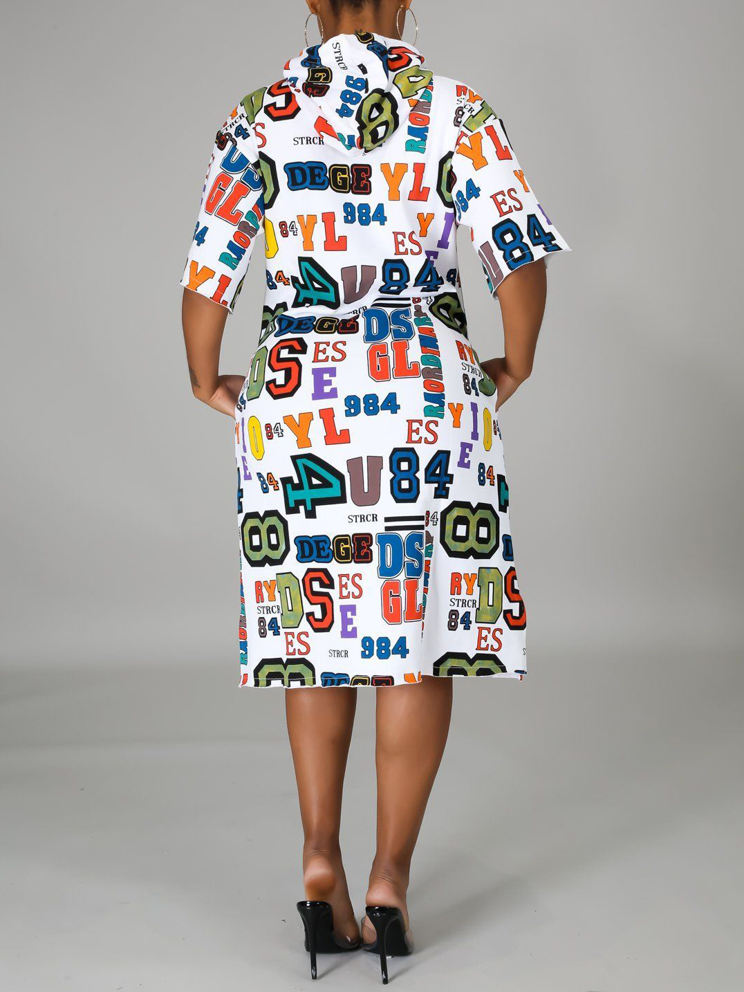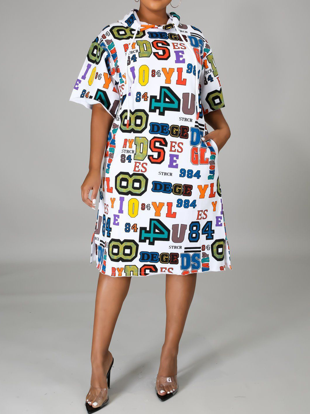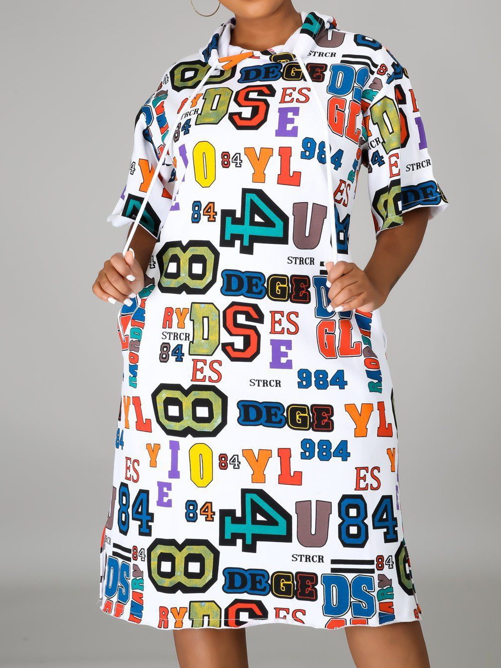 Women Casual Loose Letter Graphic Print Hooded Dress