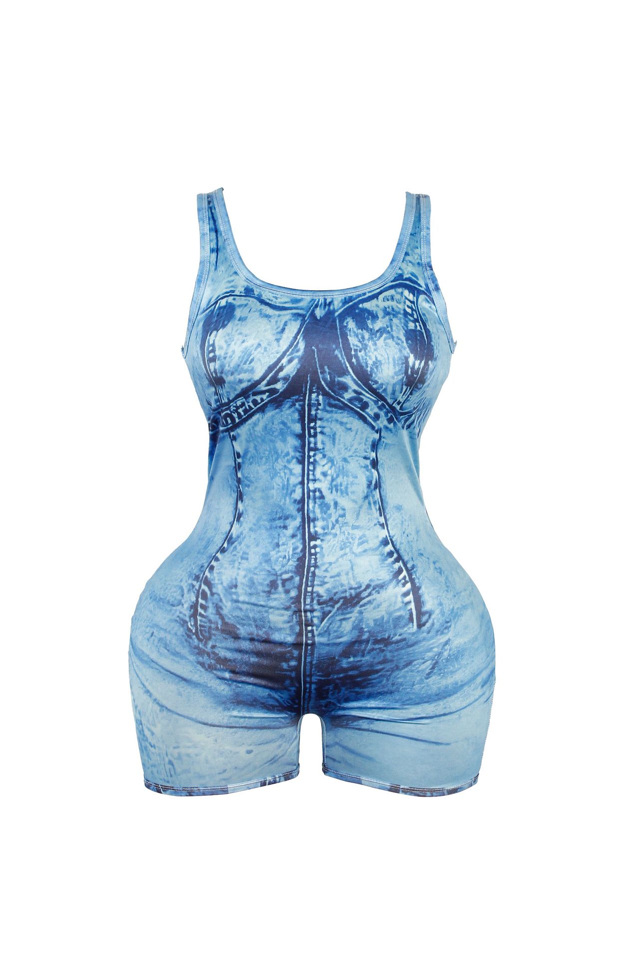 Women Clothing Denim Printing Sexy Suspenders Tube Top Backless Romper Women