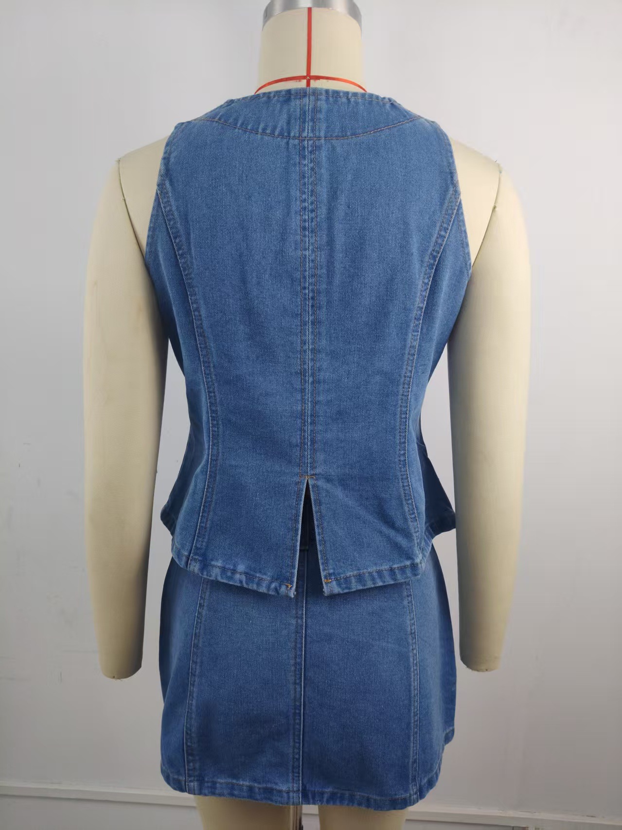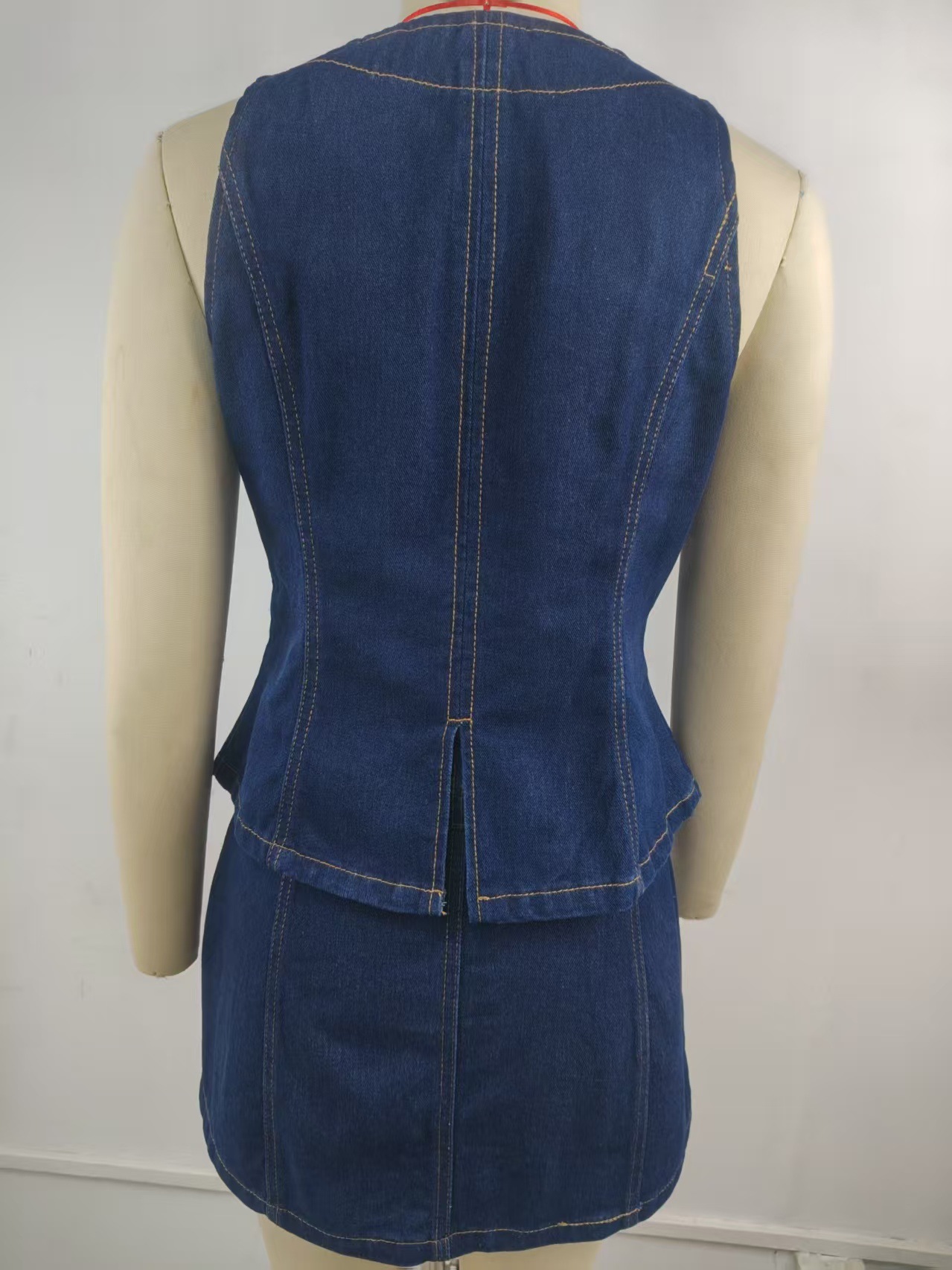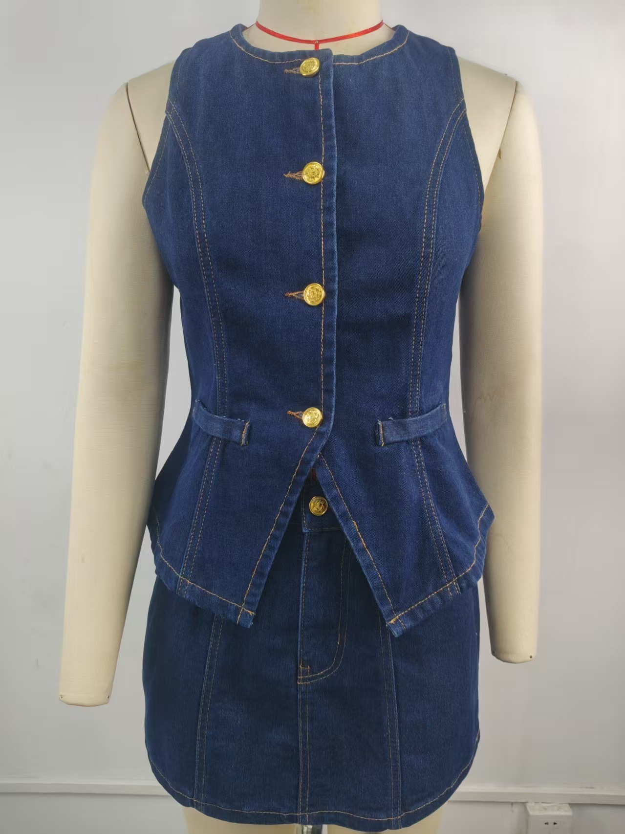 Women Clothing Summer Washed Sleeveless Casual Denim Skirt Set