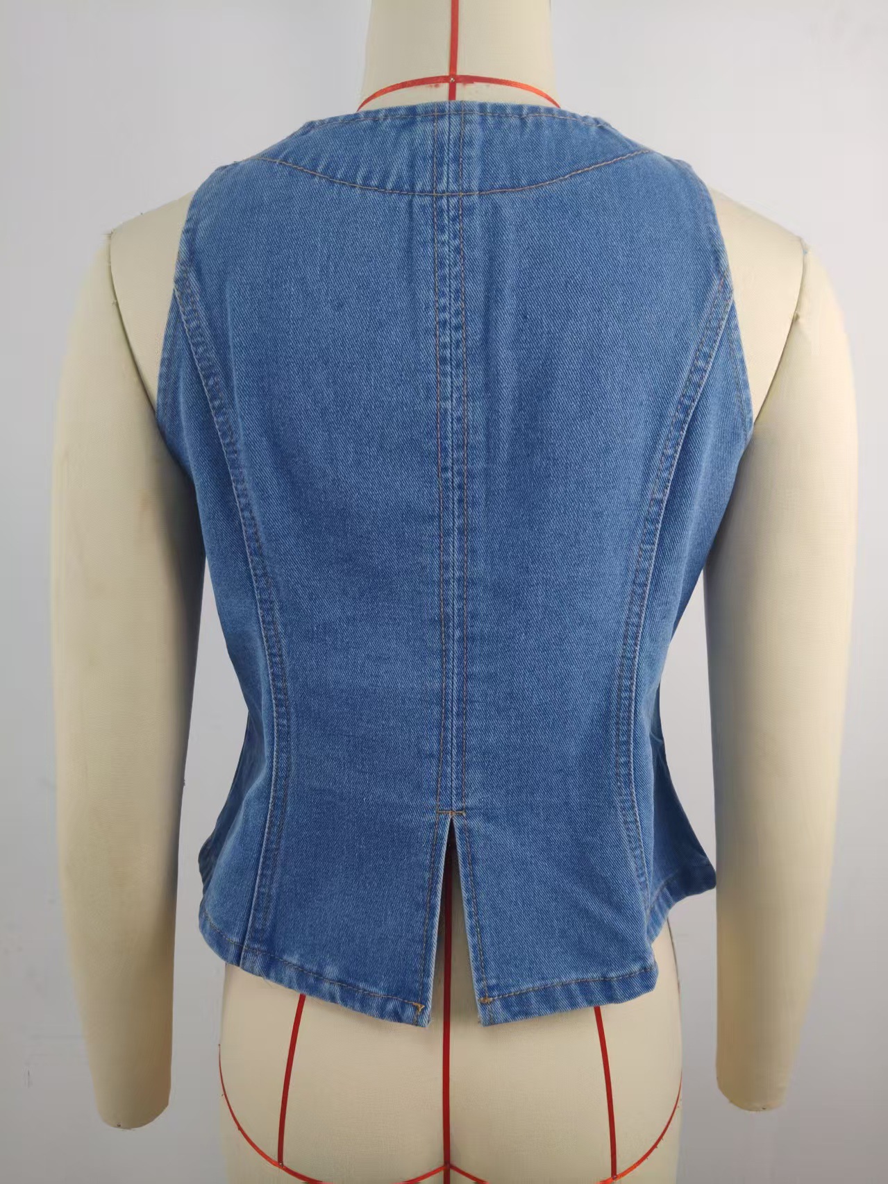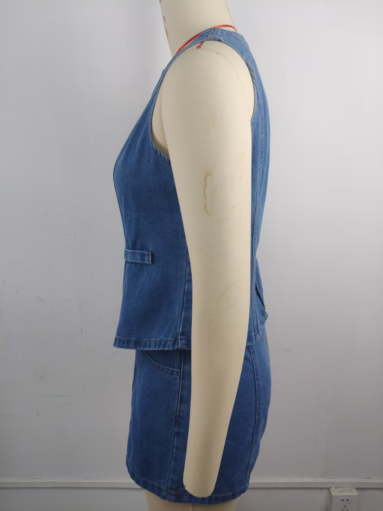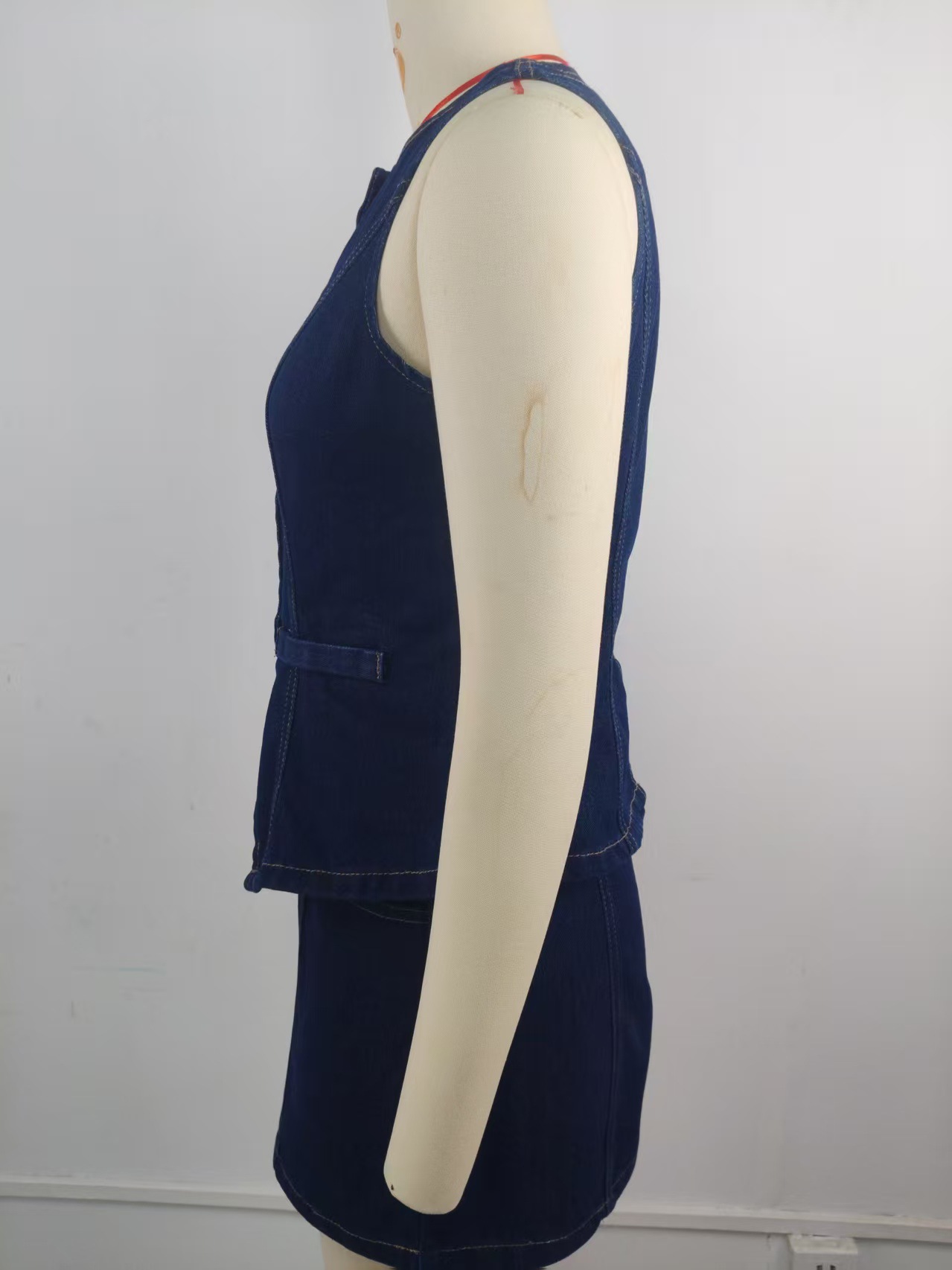 Women Clothing Summer Washed Sleeveless Casual Denim Skirt Set